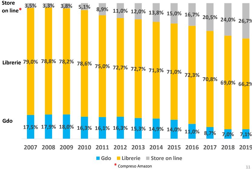Un dato rilevante è il cambiamento nelle modalità di acquisto. Si registra infatti un incremento complessivo degli acquisti effettuati online, sulle piattaforme di e-commerce disposte dai siti delle case editrici e su Amazon, leader mondiale nel settore. La grande distribuzione è in netta flessione, assieme alle librerie, sinonimo di acquisti effettuati sempre più da casa.