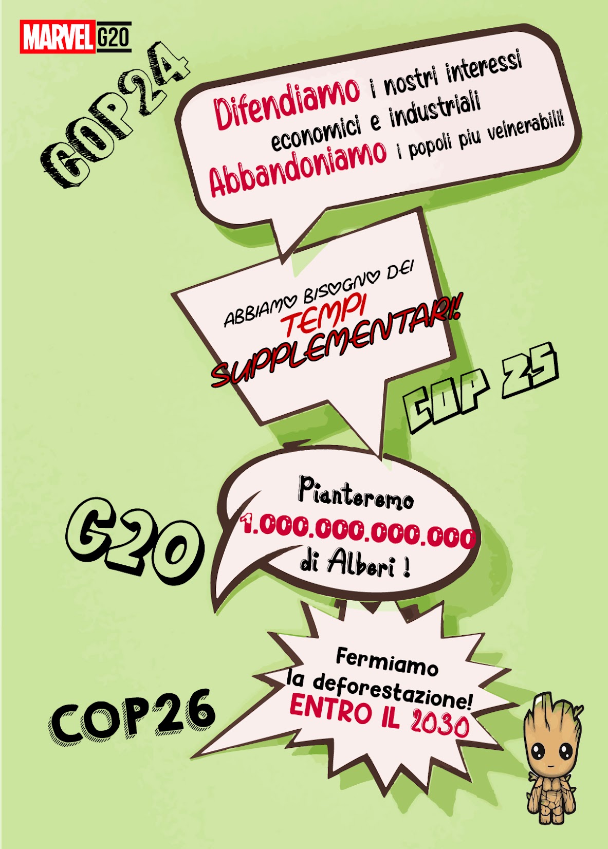 Una delle possibili fonti di questo sentimento di paura trova le sue radici nell’inconsistenza e nella poca credibilità attribuita alle scelte politiche riguardo la questione ambientale. L’ormai celebre “Blablabla” dell’attivista ambientale Greta Thunberg rappresenta l’insoddisfazione di milioni di giovani che seguendo i tavoli di discussione internazionali reputano le soluzioni individuate come insufficienti e molto spesso approssimative. Un esempio sono le recenti proposte emerse nei vertici del G20, il foro internazionale che riunisce le principali economie del mondo, e Cop26, conferenza delle Nazioni Unite sui cambiamenti climatici . Specialmente per il primo meeting, quello del G20 conclusosi a Roma il 31 ottobre 2021, una dichiarazione fortemente criticata è stata quella relativa all’obiettivo di limitare le emissioni a 1,5°C grazie anche allo strumento della riforestazione.